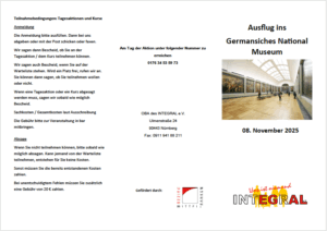 Hier die aktuellsten Ausflüge und Unternehmungen: Café Dienstag OBA-Club Winterfest 18. Dezember 2025 16. September 2025 Weiterlesen » Tanzen für Alle 18. November 2025 16. September 2025 Weiterlesen » Tanz-Treff Oktober-Dezember 16. September 2025 Weiterlesen » Plätzchen backen 06. Dezember 2025 16. September 2025 Weiterlesen » Ausflug ins Germanische Nationalmuseum 08. November 2025 16. September 2025 Weiterlesen » OBA Club – Donnerstags 17-21 Uhr 16. September 2025 Weiterlesen » « Voriger Seite1 Seite2 Nächster »